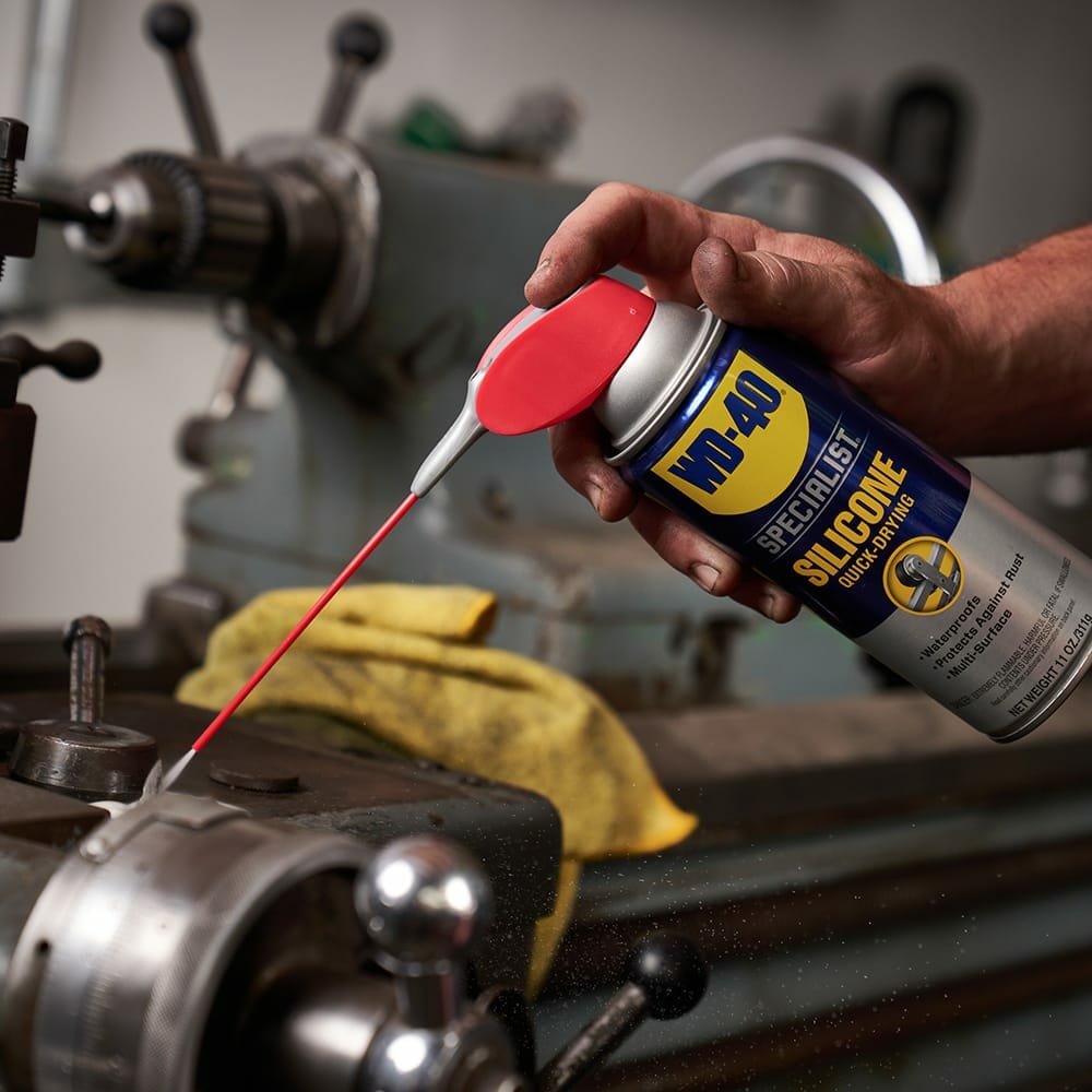 WD-40 Specialist Silicone Lubricant safely lubricates, waterproofs and protects metal and non-metal surfaces such as rubber, plastic and vinyl. This formula dries fast and leaves a clear, non-staining film that doesn’t stick or make a mess, so it won’t attract dirt. Great for use on cables, pulleys, guide rails, valves, linkages, hinges, locks and more. Effective in-use temperatures ranging from -100° F to 500° F